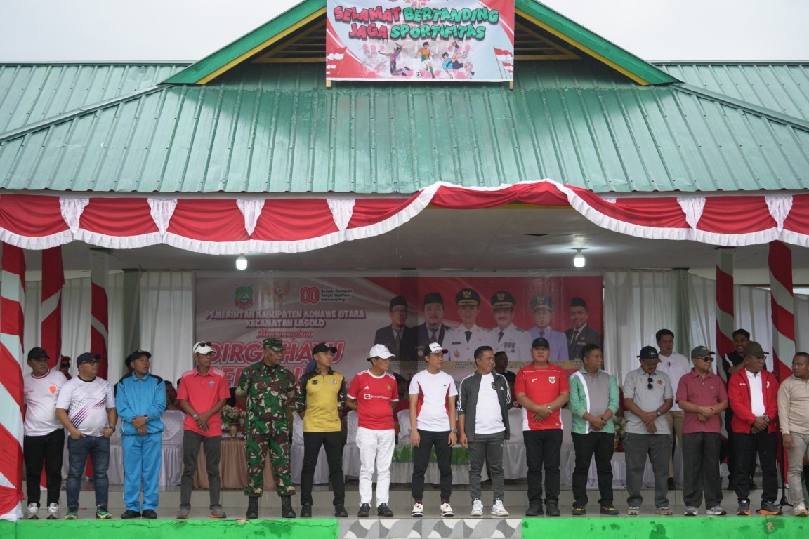 Bupati Konawe Utara, H. Ikbar, S.H., M.H, didampingi Wakil Bupati, H. Abuhaera, S.Sos., M.Si, dan Ketua DPRD Konawe Utara, Herman Sewani, S.H, secara resmi membuka Pekan Olahraga dan Seni (Porseni) HUT ke-80 RI tingkat Kecamatan Lasolo.