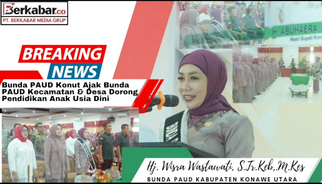Berkabar.co – Konawe Utara. Bunda Pendidikan Anak Usia Dini (PAUD) Kabupaten Konawe Utara, Hj. Wisra Wastawati, S.Tr.Keb., M.Kes, mengajak seluruh Bunda PAUD tingkat Kecamatan dan Kelurahan/Desa untuk aktif mendorong pendidikan anak usia dini di wilayah masing-masing.
