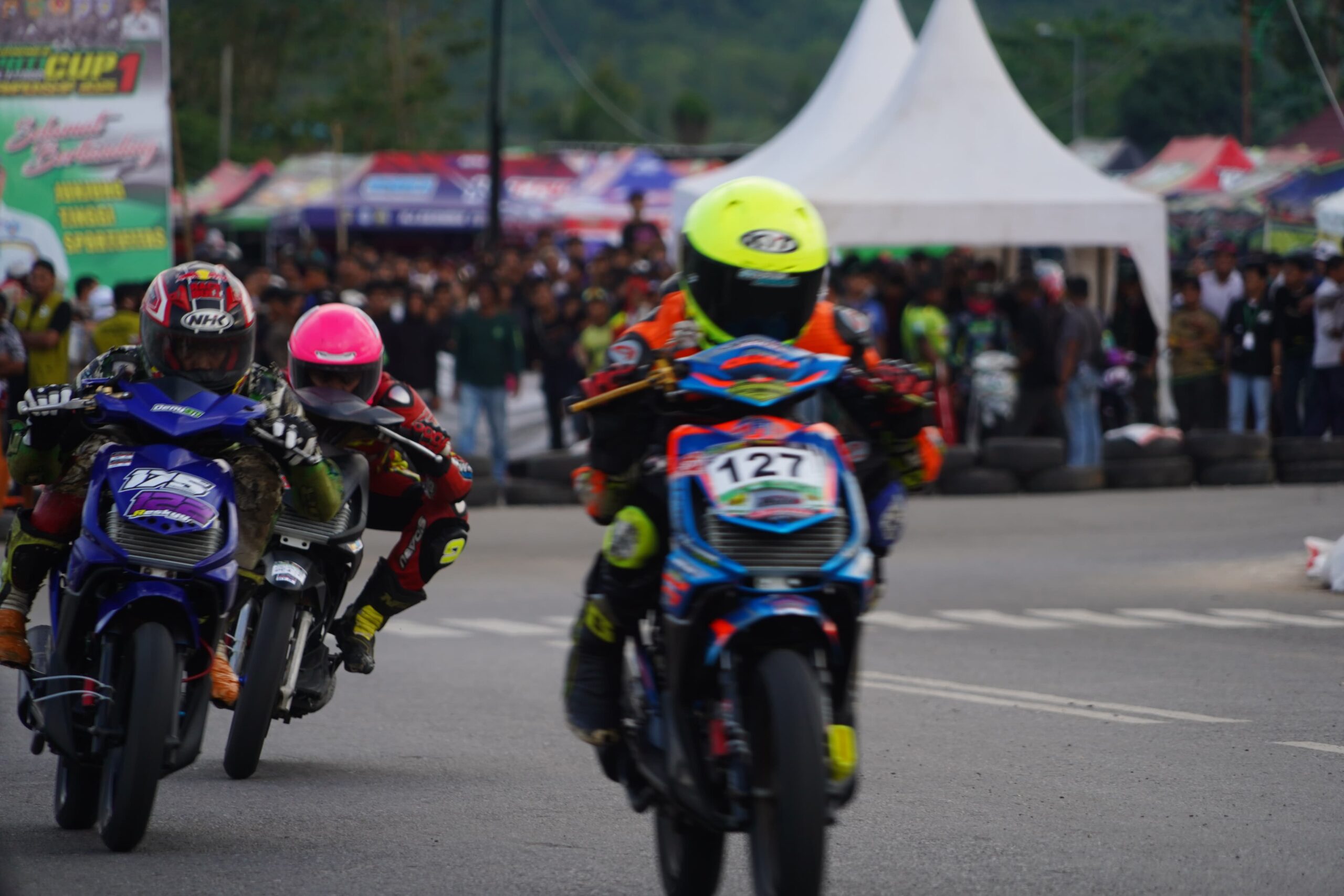 Dengan penuh wibawa, Ia membuka ajang perdana ini yang langsung disambut gegap gempita penonton dan pembalap.