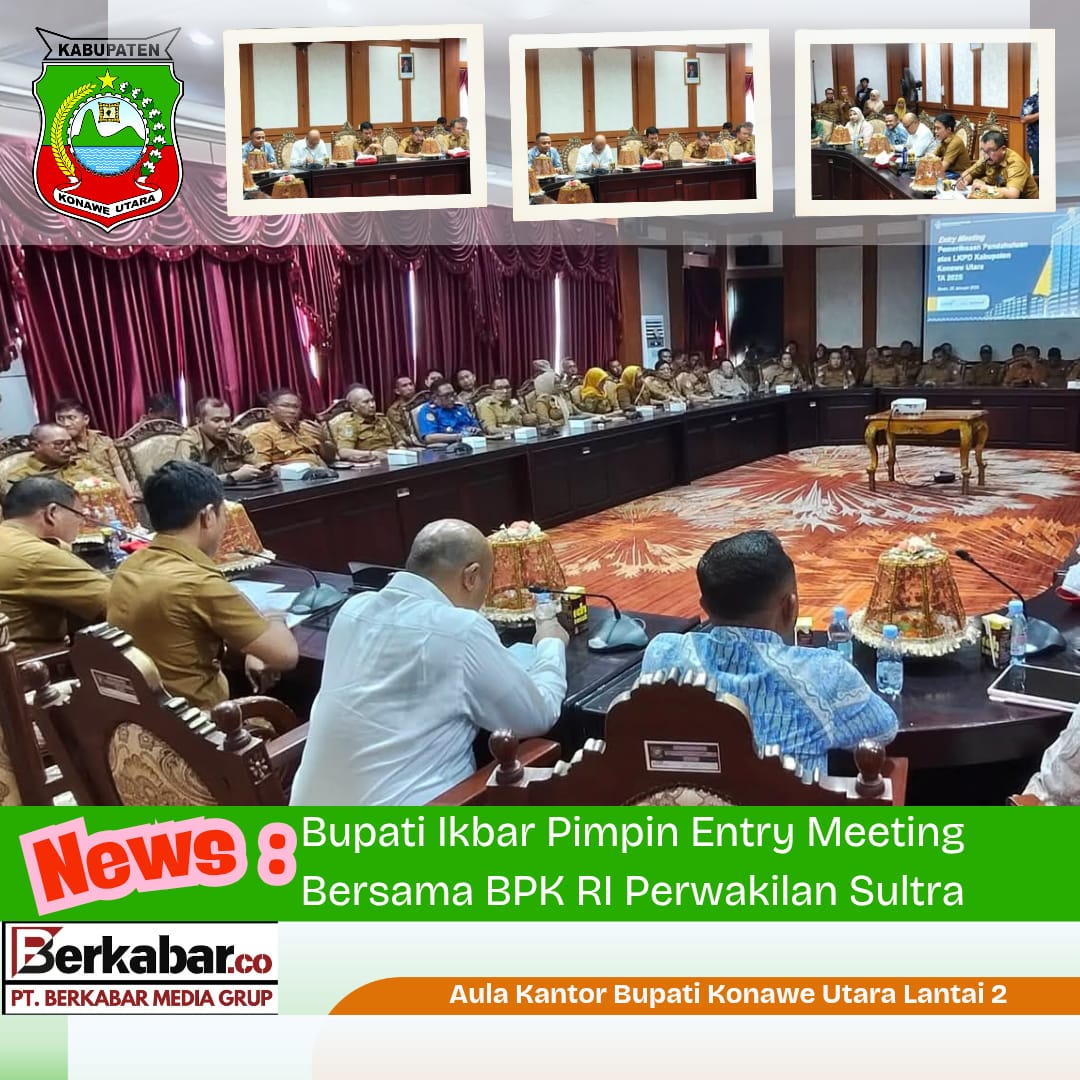Berkabar.co – Konawe Utara. Bupati Konawe Utara, H. Ikbar, SH., MH., memimpin rapat kegiatan Entry Meeting bersama Badan Pemeriksa Keuangan (BPK) RI Perwakilan Provinsi Sulawesi Tenggara, yang berlangsung di Aula Lantai II Kantor Bupati Konawe Utara, Senin, 26 Januari 2026.