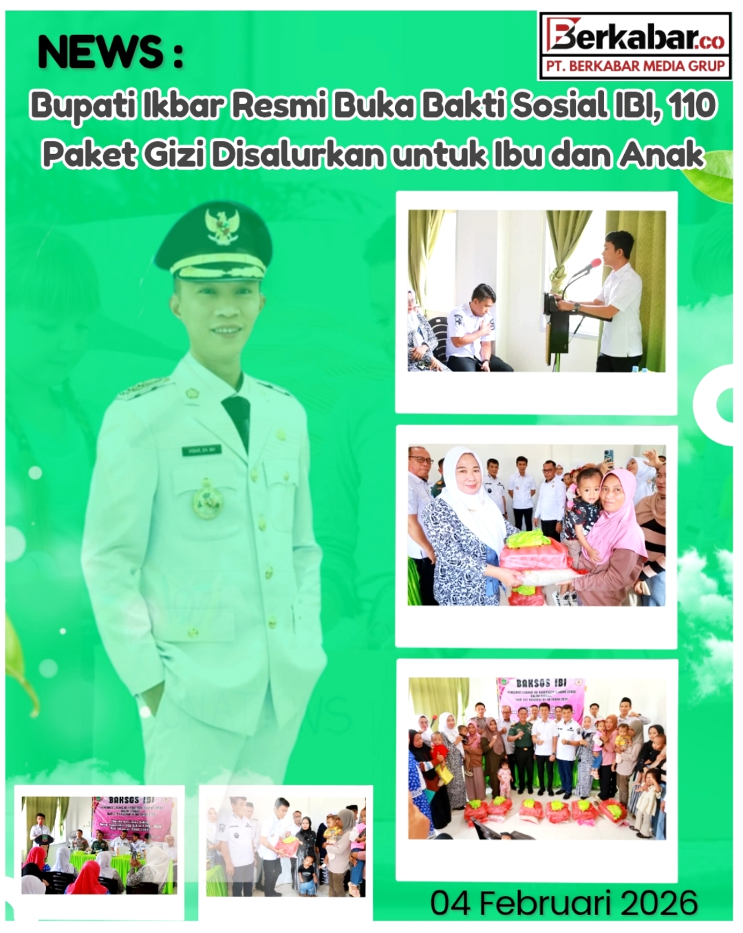Berkabar.co – Konawe Utara. Bupati Konawe Utara, H. Ikbar, SH., MH., didampingi Wakil Bupati H. Abuhaera, S.Sos., M.Si., secara resmi membuka kegiatan Bakti Sosial Ikatan Bidan Indonesia (IBI) Kabupaten Konawe Utara yang dipusatkan di Puskesmas Asera, Rabu (4/2/2026).