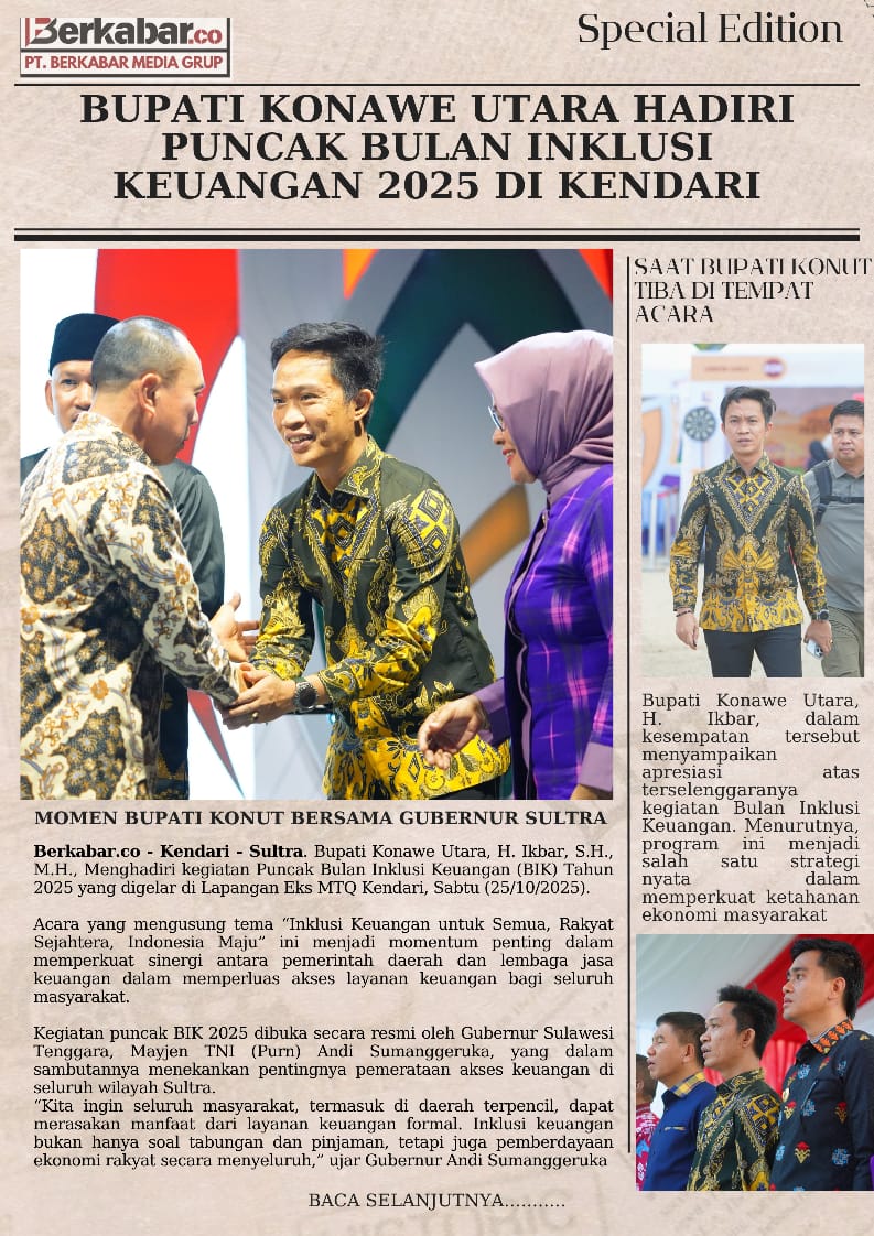 Berkabar.co – Kendari – Sultra. Bupati Konawe Utara, H. Ikbar, S.H., M.H., Menghadiri kegiatan Puncak Bulan Inklusi Keuangan (BIK) Tahun 2025 yang digelar di Lapangan Eks MTQ Kendari, Sabtu (25/10/2025).