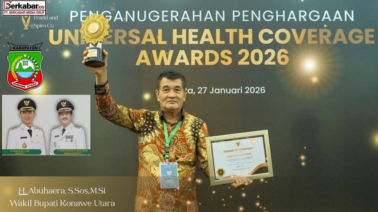 Berkabar.co – Konawe Utara. Pemerintah Kabupaten Konawe Utara kembali menorehkan prestasi membanggakan di tingkat nasional. Di bawah kepemimpinan Bupati Konawe Utara, H. Ikbar, SH., MH, bersama Wakil Bupati H. Abuhaera, S.Sos., M.Si, Pemda Konawe Utara berhasil meraih Penghargaan Universal Health Coverage (UHC) Award 2026 Kategori Utama.