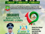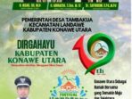 Berkabar.co – Konawe Utara. Pemerintah Desa Tambakua Kecamatan Landawe bersama seluruh elemen masyarakat menyampaikan ucapan Dirgahayu Kabupaten Konawe Utara yang ke-19 tahun.