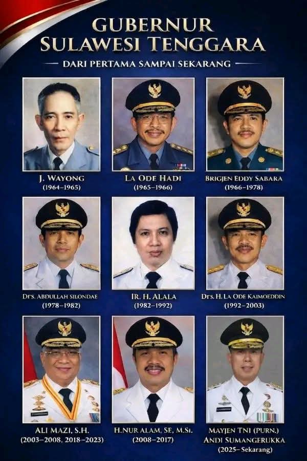 Kini, estafet kepemimpinan berada di tangan Mayjen TNI (Purn.) Andi Sumangerukka (2025–sekarang), yang diharapkan mampu membawa energi baru dalam mendorong kemajuan, kesejahteraan, dan masa depan Sulawesi Tenggara yang lebih baik.