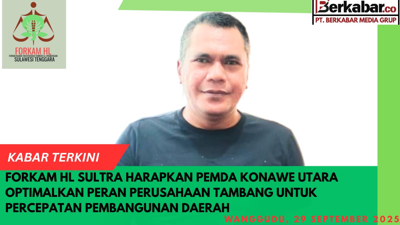 Berkabar.co – Konawe Utara – Forum Komunikasi Hukum dan Lingkungan Hidup Sulawesi Tenggara (Forkam HL Sultra) mengharapkan Pemerintah Daerah (Pemda) Konawe Utara untuk lebih mengoptimalkan peran perusahaan tambang dalam percepatan pembangunan daerah. Harapan ini disampaikan mengingat Konawe Utara telah menjadi wilayah operasional puluhan perusahaan tambang selama lebih dari 30 tahun.