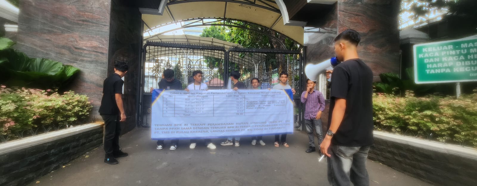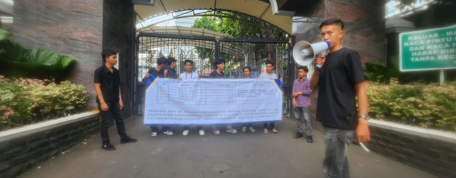 Dalam aksinya, Ampuh Sultra menguraikan terkait dugaan pelanggaran PT. Bumi Sentosa Jaya (BSJ) yang berlokasi di Kecamatan Lasolo Kepulauan, Kabupaten Konawe Utara, Provinsi Sulawesi Tenggara.