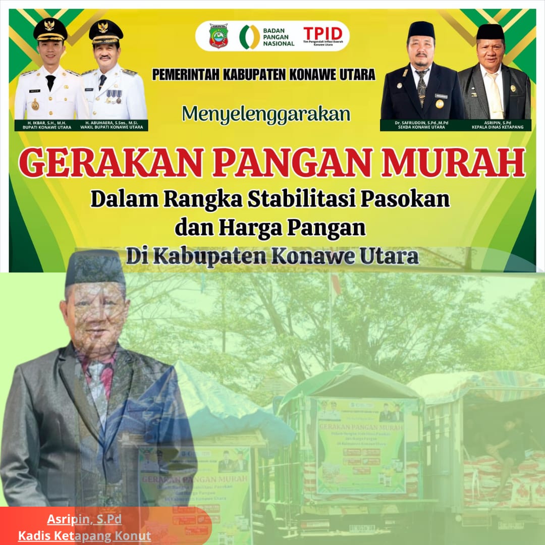 Berkabar.co – Wanggudu – Konawe Utara, 4 November 2025. Pemerintah Daerah Kabupaten Konawe Utara melalui Dinas Ketahanan Pangan kembali melaksanakan kegiatan Gerakan Pangan Murah (GPM) sebagai langkah konkret menjaga stabilitas pasokan dan harga bahan pangan pokok di tengah potensi tekanan inflasi.