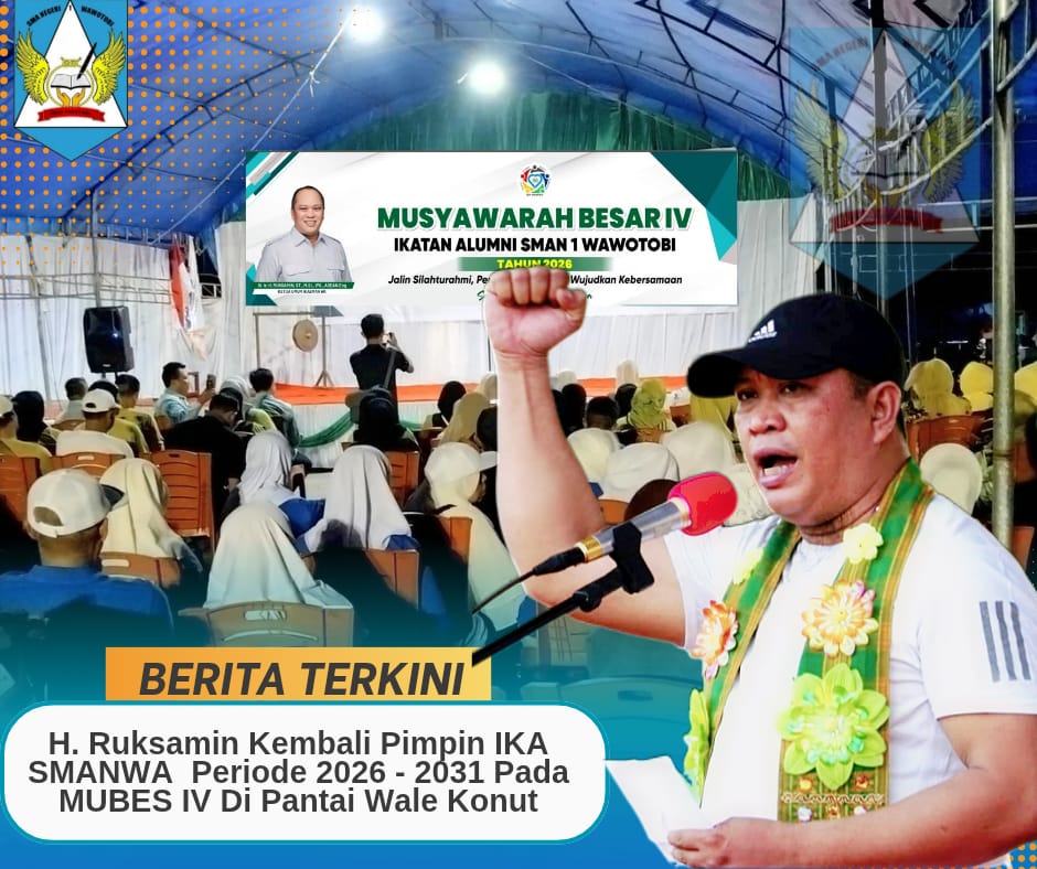 Berkabar.co – Sawa – Konawe Utara. Musyawarah Besar (Mubes) IV Ikatan Alumni SMA Negeri Wawotobi (IKA SMANWA) yang dilaksanakan di Pantai Wale berlangsung sukses dan penuh kebersamaan. Dalam kegiatan tersebut, H. Ruksamin kembali terpilih untuk memimpin IKA SMANWA untuk periode selanjutnya.