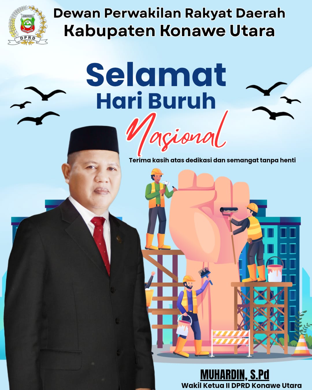 Berkabar.co – Konawe Utara. Memperingati Hari Buruh Nasional yang jatuh pada 1 Mei 2026, Muhardin, S.Pd menegaskan pentingnya peran negara dalam memperkuat perlindungan serta meningkatkan kesejahteraan para buruh di Indonesia.