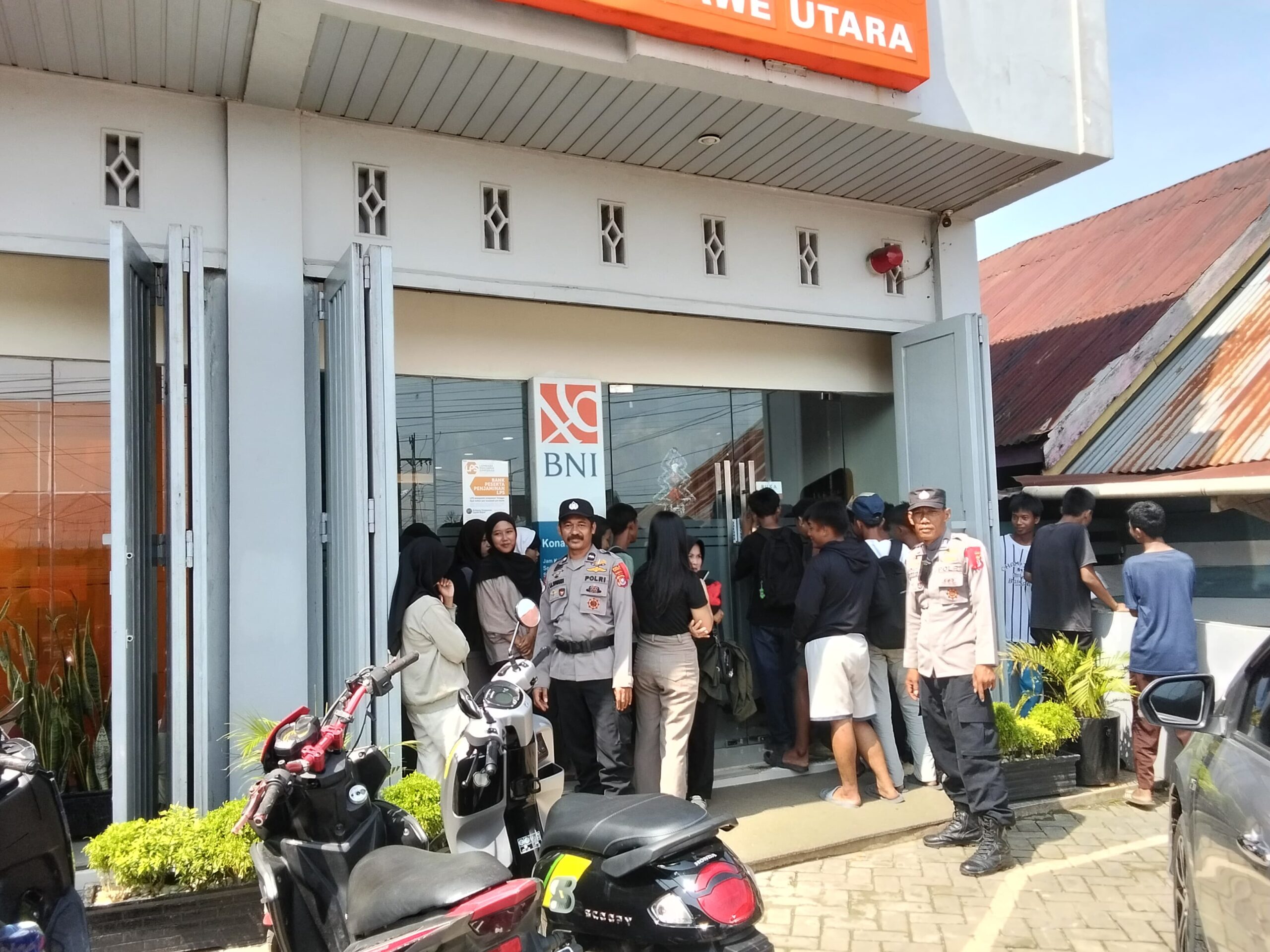 Dana yang di peruntukan bagi pelajar tersebut di salurkan serentak kepada pelajar di seluruh sekolah yang ada di Kabupaten Konawe utara mengakibatkan kepadatan terjadi di Bank BNI Wanggudu.