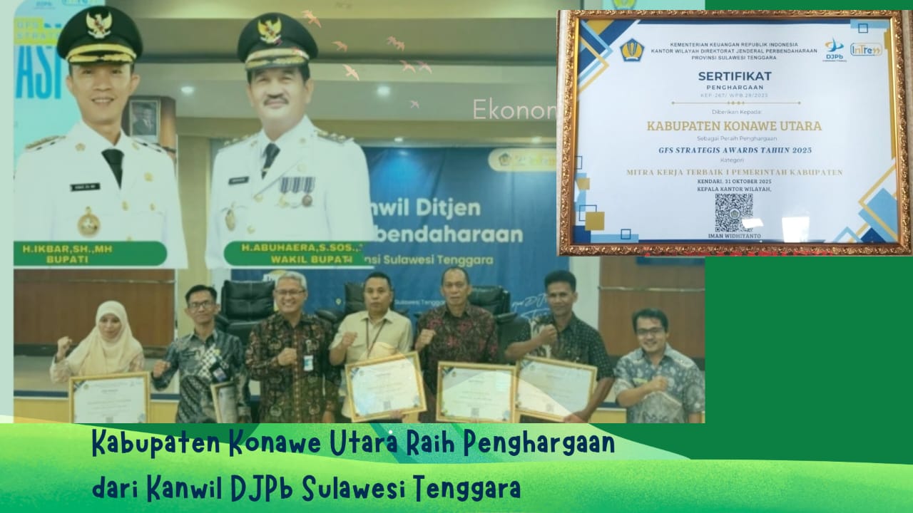Berkabar.co – Kendari – Sultra. Kepala Badan Keuangan dan Aset Daerah (BKAD) Kabupaten Konawe Utara, Drs. Irwan, menerima penghargaan dari Kantor Wilayah Direktorat Jenderal Perbendaharaan (Kanwil DJPb) Provinsi Sulawesi Tenggara pada kegiatan Diseminasi GFS Strategis Triwulan III Tahun 2025 dan Laporan ANOA Tahun 2024 yang digelar di Kendari, Jumat (7/11/2025).