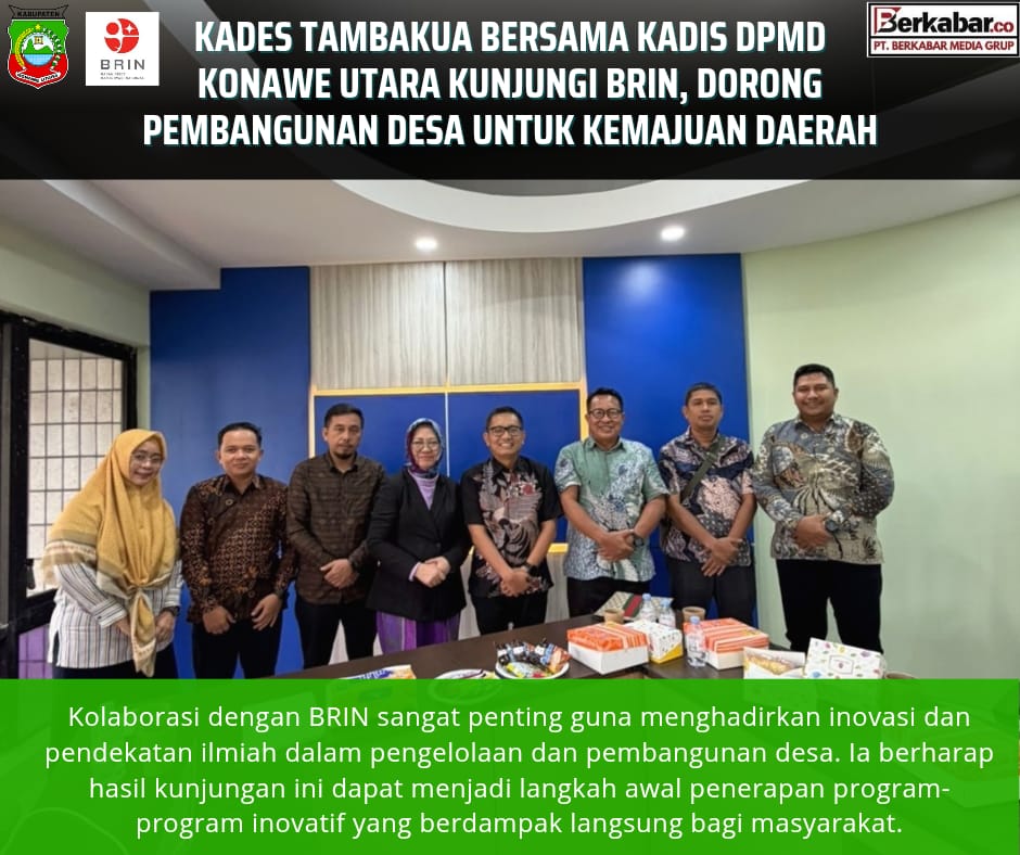 Berkabar.co – Jakarta – Kepala Desa Tambakua, Juliadin, S.IP, bersama Kepala Dinas Pemberdayaan Masyarakat dan Desa (DPMD) Kabupaten Konawe Utara, Ir. Dedeng Desriadi A., ST., MM, melakukan kunjungan kerja ke Badan Riset dan Inovasi Nasional (BRIN). Kunjungan tersebut dilakukan dalam rangka mendorong pembangunan desa yang berkelanjutan demi kemajuan daerah.