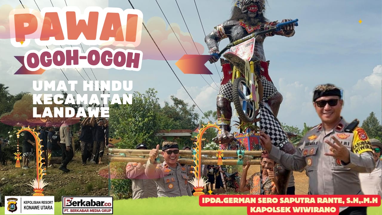 Berkabar.co – Landawe – Konawe Utara. Kapolsek Wiwirano, IPDA. German Sero Saputra Rante, S.H., M.H., turun langsung ke lapangan untuk mengawal jalannya pawai ogoh-ogoh umat Hindu di Kecamatan Landawe, Kabupaten Konawe Utara, menjelang perayaan Hari Raya Nyepi 2026.