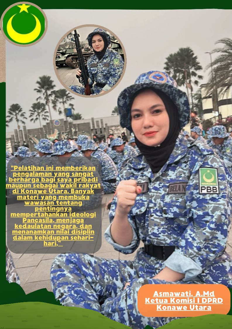 Berkabar.co – Jakarta. Ketua Komisi I DPRD Kabupaten Konawe Utara, Asmawati, A.Md, turut ambil bagian dalam kegiatan Pelatihan Bela Negara yang diselenggarakan oleh DPP Partai Bulan Bintang (DPP PBB ) di Balai Pendidikan dan Pelatihan (Bandiklat) Kemenhan RI.
