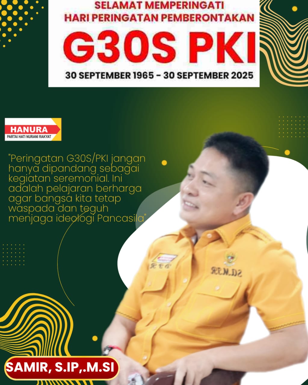 “Peringatan G30S/PKI jangan hanya dipandang sebagai kegiatan seremonial. Ini adalah pelajaran berharga agar bangsa kita tetap waspada dan teguh menjaga ideologi Pancasila. Apalagi di era digital, generasi muda harus lebih cerdas memilah informasi agar tidak terjebak pada narasi yang memutarbalikkan sejarah,” ungkap Samir, Selasa (30/9/2025).