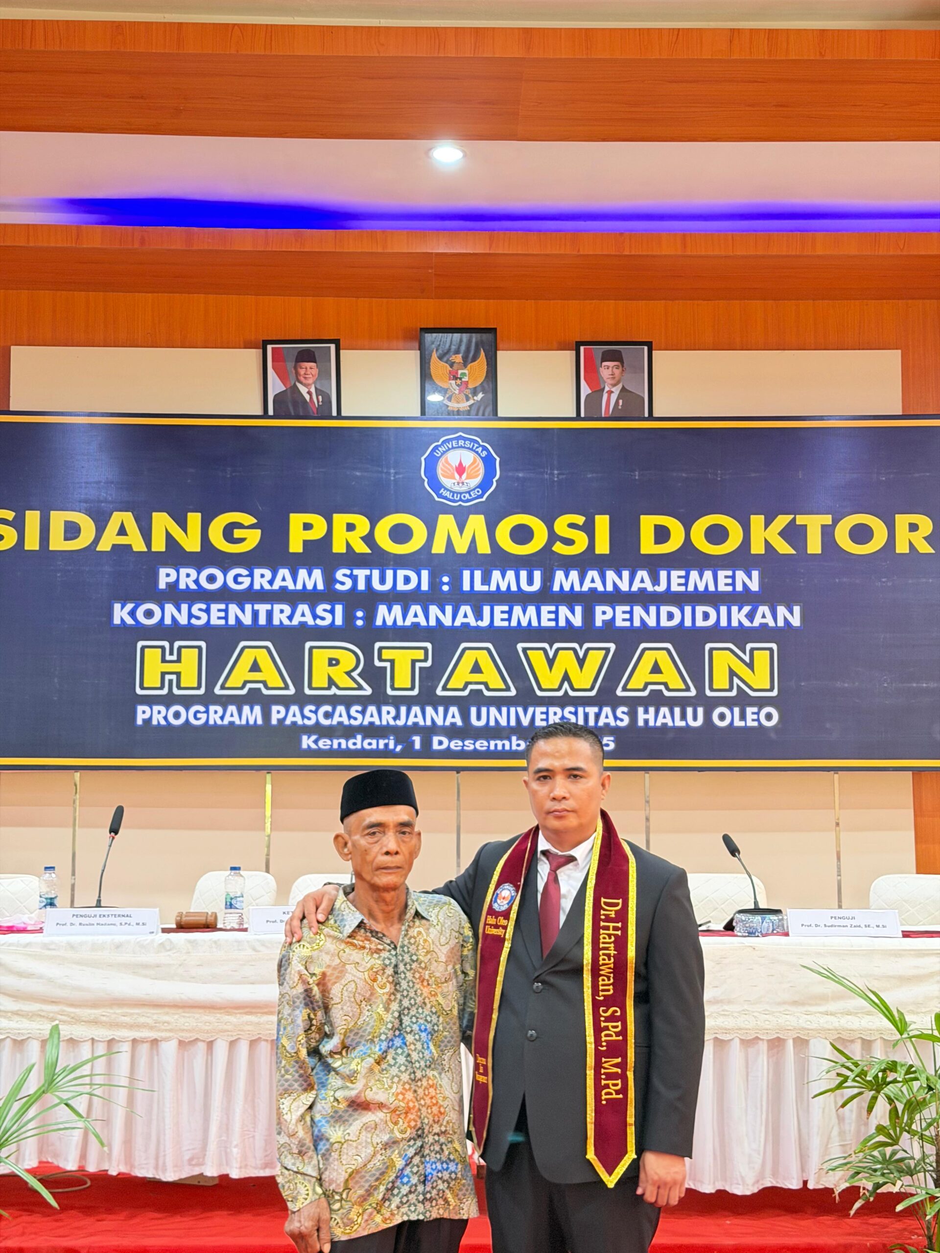 1. Dr. Hartawan, S.Pd., M.Pd. — Putra pertama yang kini menempuh dan meraih pendidikan doktoral dalam bidang manajemen pendidikan.