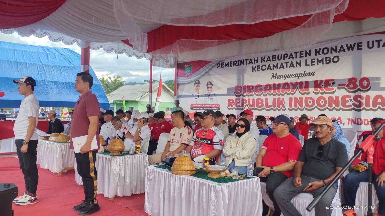 Turut hadir jajaran Forkopimda, perwakilan TNI-Polri, para kepala Organisasi Perangkat Daerah (OPD), kepala bagian lingkup Pemda Konawe Utara, Camat Lembo Askam, SKM, para lurah, dan kepala desa se-Kecamatan Lembo. Kehadiran unsur pemerintah daerah, legislatif, dan masyarakat menjadi simbol kuatnya sinergi dalam menyemarakkan momentum kemerdekaan.