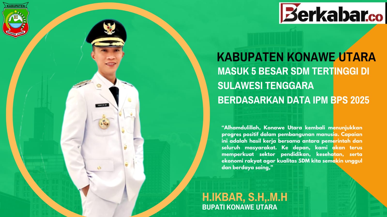 Berkabar.co – Konawe Utara – Sulawesi Tenggara. Berdasarkan rilis terbaru Badan Pusat Statistik (BPS) tahun 2025, Kabupaten Konawe Utara resmi menempati posisi 5 besar daerah dengan Sumber Daya Manusia (SDM) terbaik di Provinsi Sulawesi Tenggara. Pencapaian ini didasarkan pada nilai Indeks Pembangunan Manusia (IPM) yang terus menunjukkan tren peningkatan.