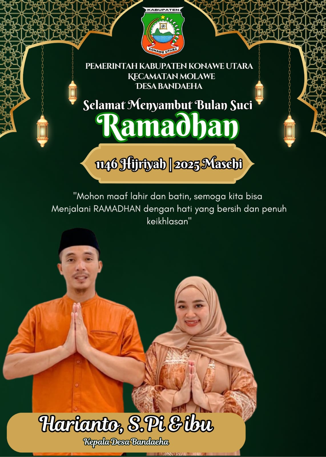 Pemerintahan Desa Bandaeha Kecamatan Molawe,Kabupaten Konawe Utara, memberikan ucapan selamat menunaikan ibadah puasa Ramadhan 1446 H / 2025 M.