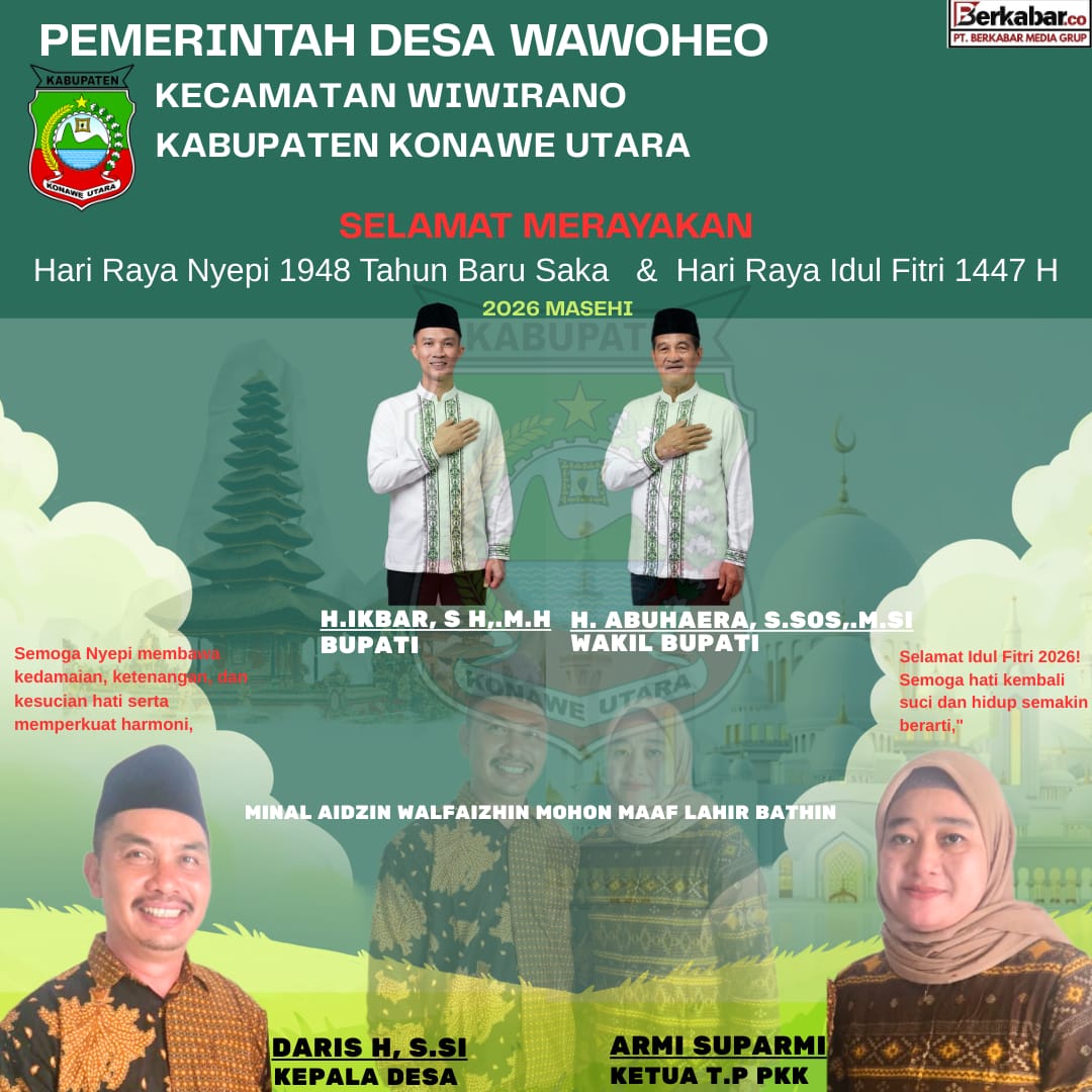 Berkabar.co – Konawe Utara. Pemerintah Desa Wawoheo, Kecamatan Wiwirano, Kabupaten Konawe Utara, mengimbau seluruh masyarakat untuk terus memperkuat toleransi dan menjaga kerukunan antarumat beragama menjelang perayaan Hari Raya Nyepi dan Idul Fitri 2026.