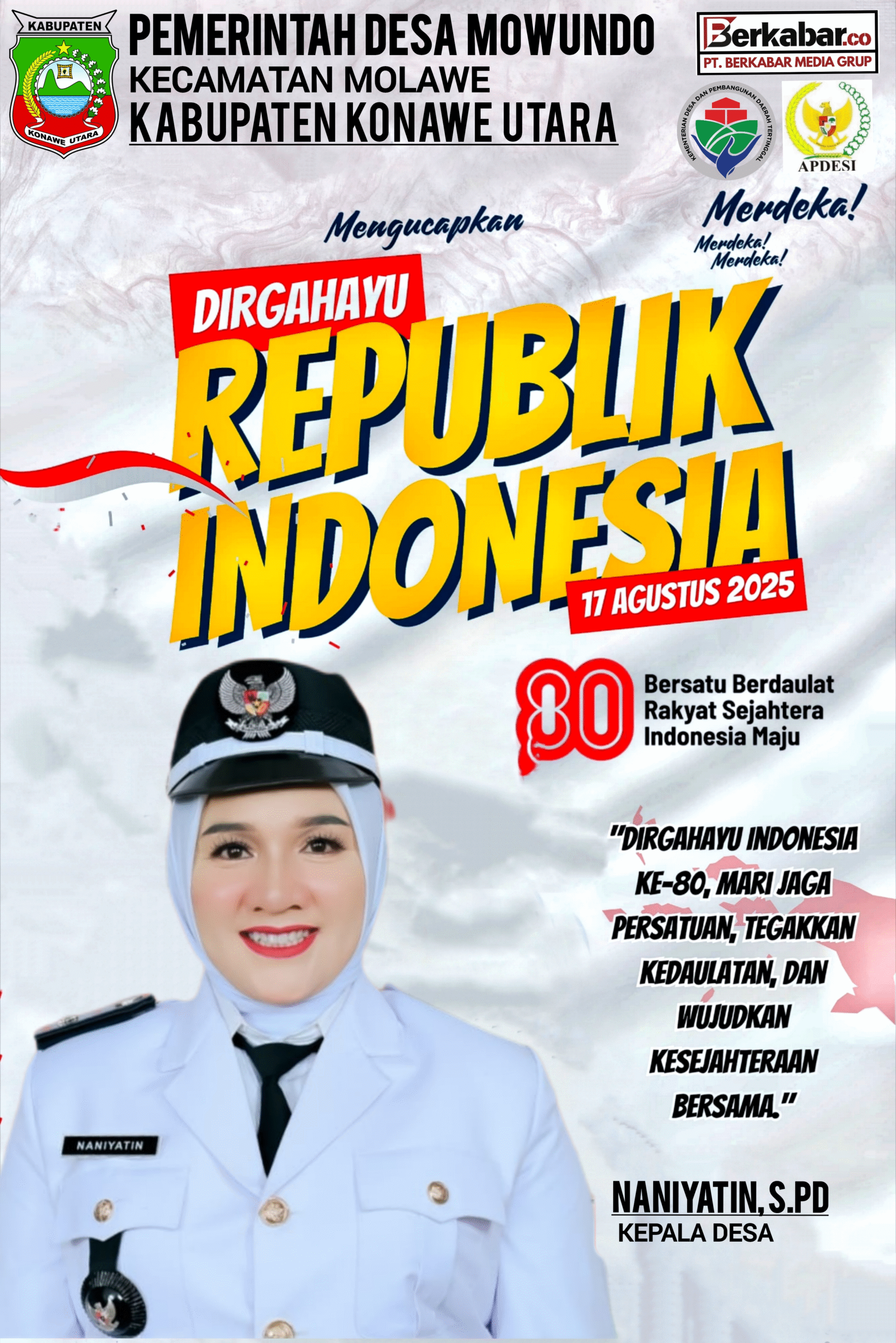 Berkabar.co – Konawe Utara. Menjelang Dirgahayu ke-80 tahun Kemerdekaan Republik Indonesia yang diperingati dan disakralkan setiap 17 Agustus, Pemerintah Desa Mowundo, Kecamatan Molawe, Kabupaten Konawe Utara (Konut), mengajak seluruh masyarakatnya untuk tidak hanya semangat saat rebutan hadiah lomba, tetapi juga semangat dalam menjaga persatuan bangsa.