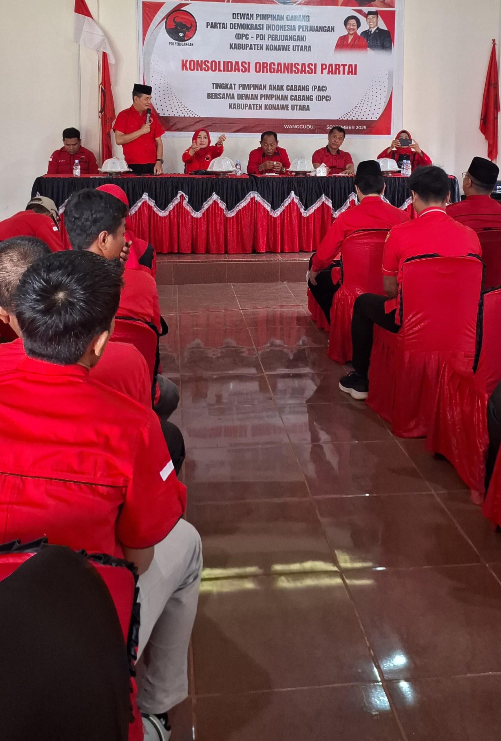 Berkabar.co – Konawe Utara. Dewan Pimpinan Cabang (DPC) PDI Perjuangan Konawe Utara menggelar rapat konsolidasi serentak bersama seluruh pengurus Pimpinan Anak Cabang (PAC) se-Konawe Utara Senin (8/9/2025). Rapat ini menjadi momentum penting dalam rangka memperkuat barisan struktural partai sekaligus mengusulkan calon ketua di tingkat cabang dan daerah untuk periode 2025-2030.