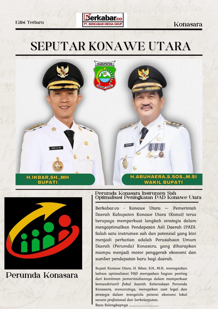 Berkabar.co – Konawe Utara — Pemerintah Daerah Kabupaten Konawe Utara (Konut) terus berupaya memperkuat langkah strategis dalam mengoptimalkan Pendapatan Asli Daerah (PAD). Salah satu instrumen sah dan potensial yang kini menjadi perhatian adalah Perusahaan Umum Daerah (Perumda) Konasara, yang diharapkan mampu menjadi motor penggerak ekonomi dan sumber pendapatan baru bagi daerah.
