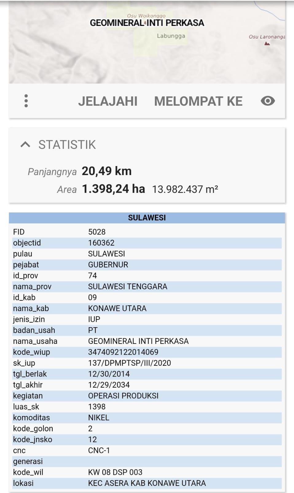 Berkabar.co – Konawe Utara — Rencana aktivitas penambangan yang akan dilakukan PT Geomineral Inti Perkasa ( GIP ) memicu polemik dari berbagai pihak. Pasalnya, lokasi Izin Usaha Pertambangan (IUP) perusahaan tersebut berada tidak jauh dari kawasan Kota Wanggudu, pusat pemerintahan dan Ibu Kota Kabupaten Konawe Utara (Konut).