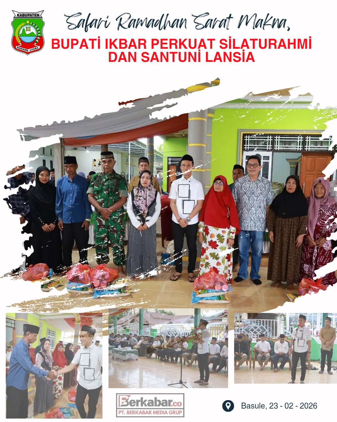 Berkabar.co – Lasolo – Konawe Utara. Dalam suasana penuh keberkahan bulan suci Ramadhan 1447 Hijriah, Bupati Konawe Utara H. Ikbar, SH., MH., melaksanakan kegiatan Safari Ramadhan dengan menyerahkan bantuan sembako kepada warga lanjut usia (Lansia) di Desa Basule, Kecamatan Lasolo, Senin (23/2/2026).