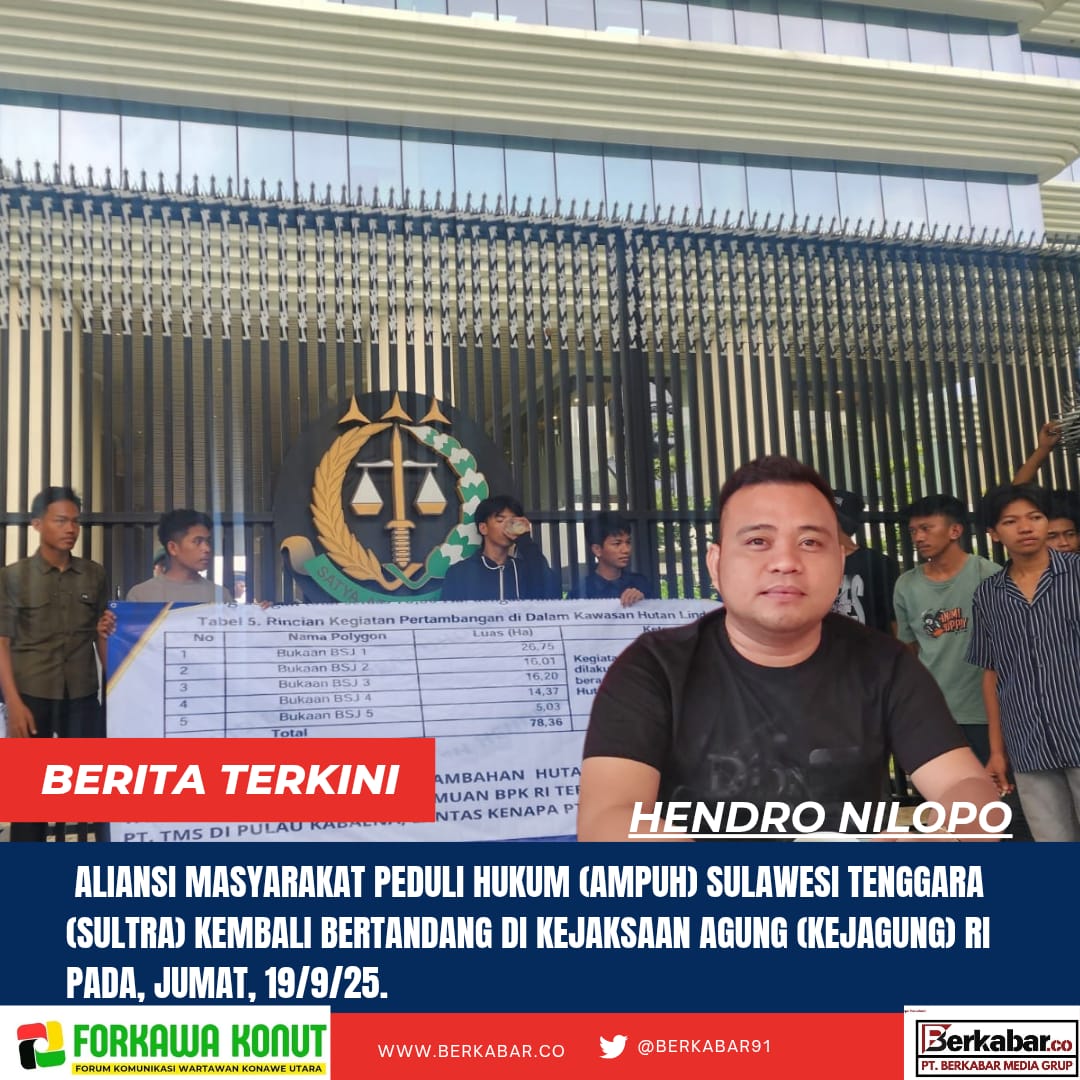 Berkabar.co – Nasional. Aliansi Masyarakat Peduli Hukum (Ampuh) Sulawesi Tenggara (Sultra) kembali bertandang di Kejaksaan Agung (Kejagung) RI pada, Jumat, 19/9/25.