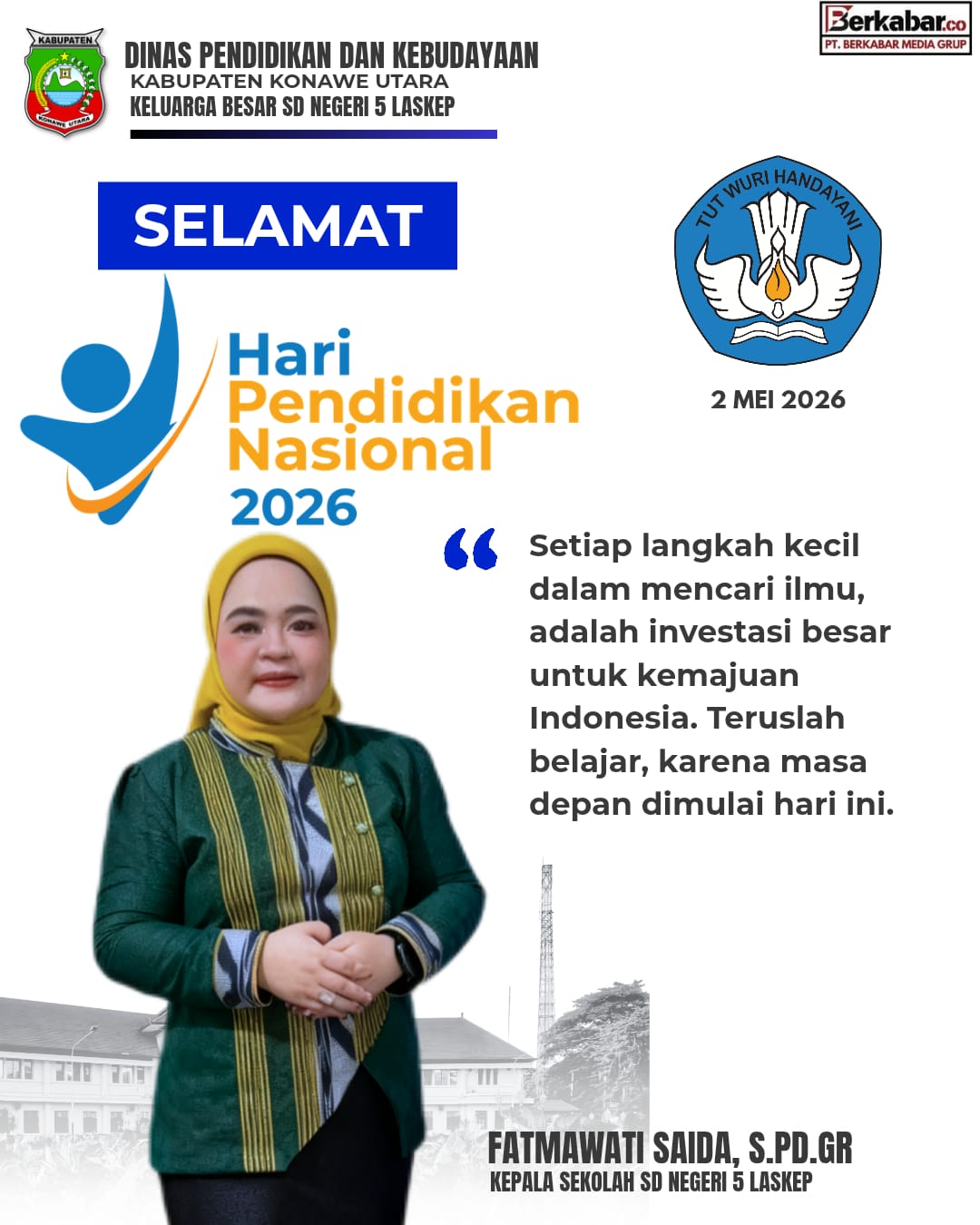 Dengan semangat Hardiknas 2026, SDN 5 Laskep berharap terwujudnya lingkungan pendidikan yang inklusif, aman, dan benar-benar ramah anak demi mendukung lahirnya generasi yang sehat, cerdas, dan berkarakter.