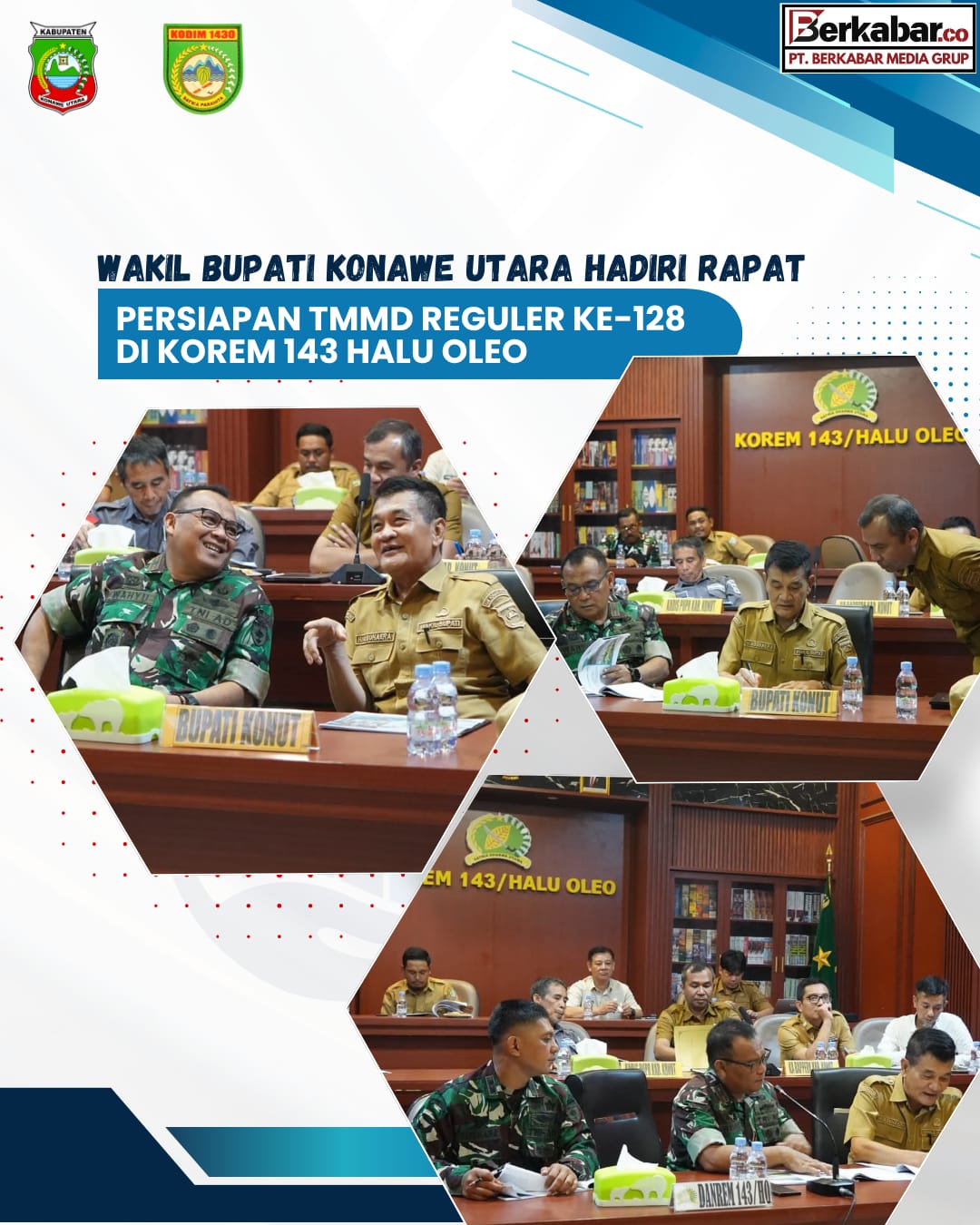 Berkabar.co – Konawe Utara. Bupati Konawe Utara, H. Ikbar, SH., MH diwakili oleh Wakil Bupati Konawe Utara, H. Abuhaera, S.Sos., M.Si menghadiri rapat persiapan pelaksanaan TNI Manunggal Membangun Desa (TMMD) Reguler ke-128 yang dilaksanakan di Aula Tamalaki Korem 143/Halu Oleo pada Senin, 6 April 2026.