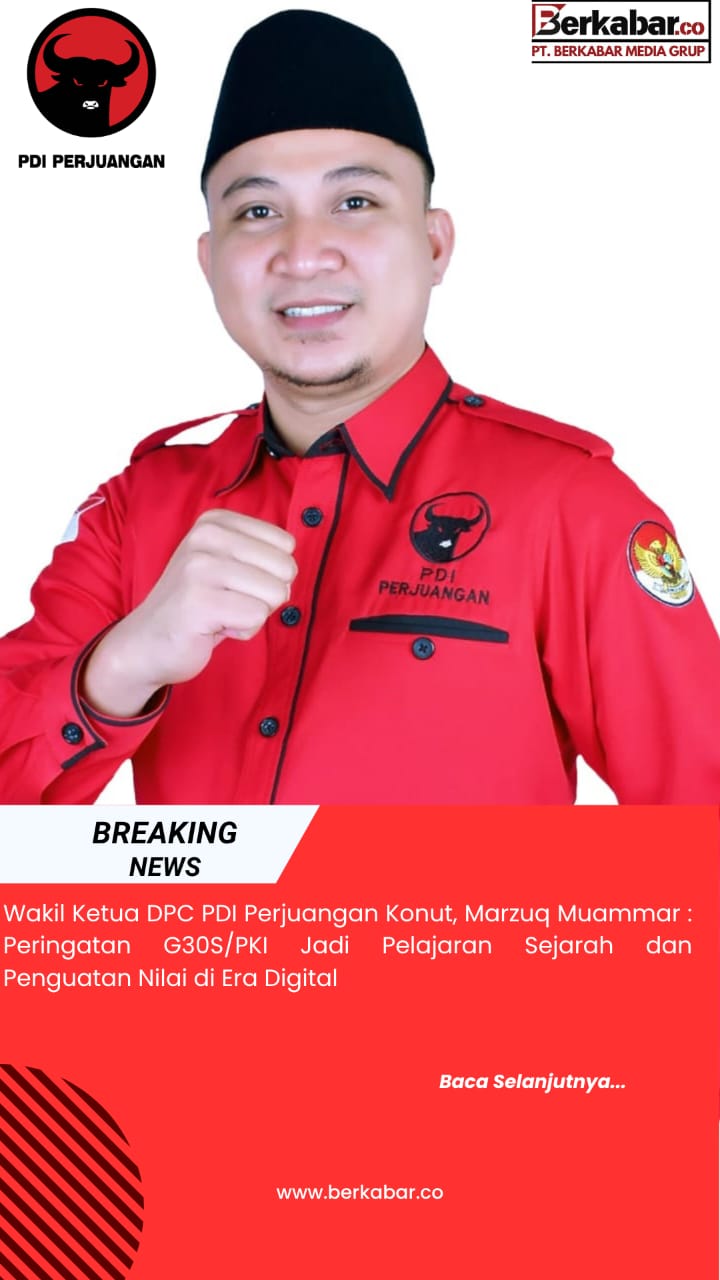 Berkabar.co – Konawe Utara – Wakil Ketua Dewan Pimpinan Cabang (DPC) PDI Perjuangan Kabupaten Konawe Utara, Marzuq Muammar, S.Ars menegaskan bahwa peringatan peristiwa G30S/PKI tidak boleh hanya dimaknai sebagai agenda seremonial semata. Menurutnya, momentum ini harus dijadikan sarana pembelajaran sejarah sekaligus penguatan nilai kebangsaan, khususnya di tengah tantangan era digital yang serba cepat.