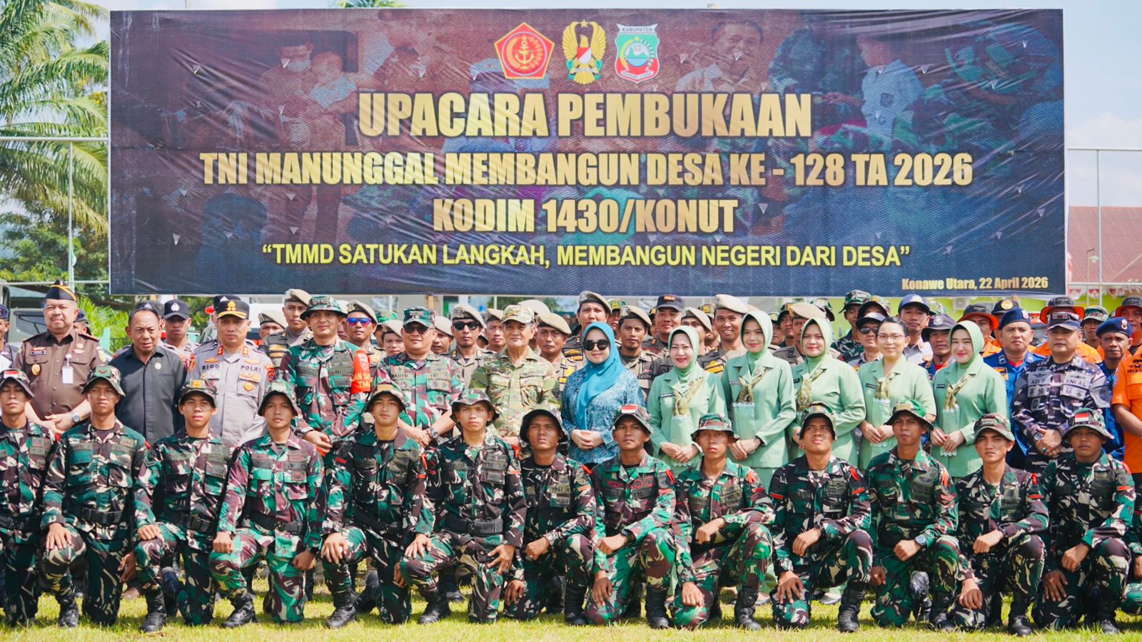 Berkabar.co – Konawe Utara. Wakil Bupati Konawe Utara, H. Abuhaera, mewakili Bupati H. Ikbar, resmi membuka pelaksanaan TNI Manunggal Membangun Desa (TMMD) ke-128 Tahun Anggaran 2026. Upacara pembukaan berlangsung khidmat di Lapangan Ladasi, Kelurahan Andowia, Kecamatan Andowia, Rabu (22/04/2026).